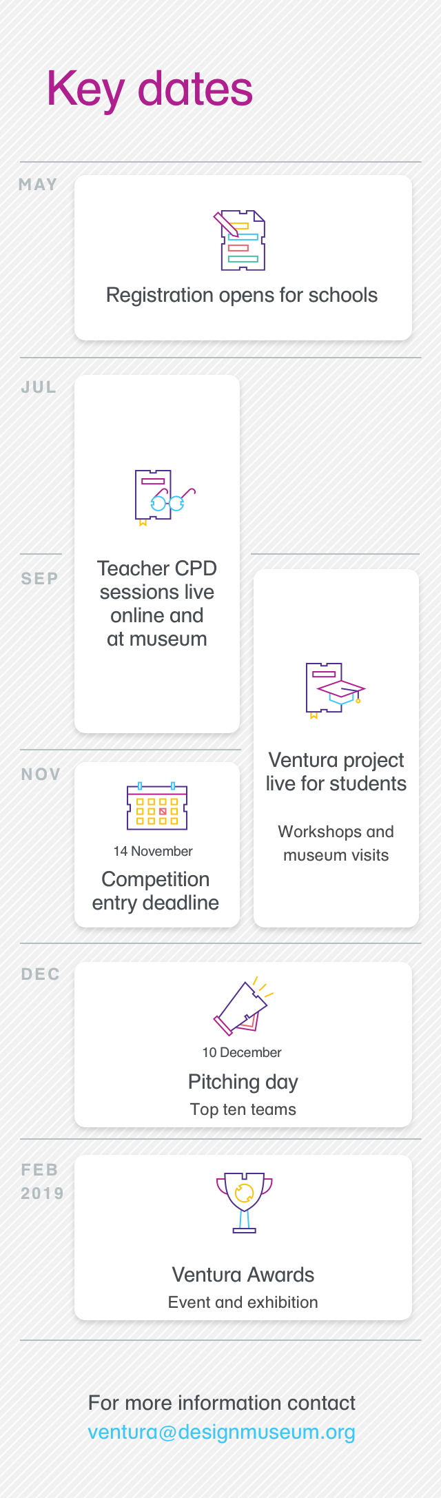 - International and Independent schools are welcome to participate in the project but we are unable to offer free workshops and they will compete for a separate prize. For more details please contact the Design Ventura team.