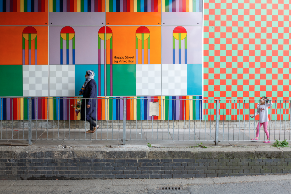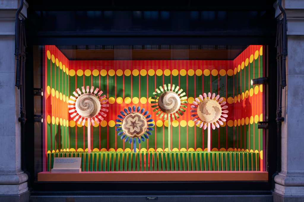 Recent projects include The Dulwich Picture Gallery Pavilion 2019: The Colour Palace, the Thessaly Road Bridge underpass Happy Street, 2019 (pictured above) and the Project Earth window display for Selfridges, London (pictured below).