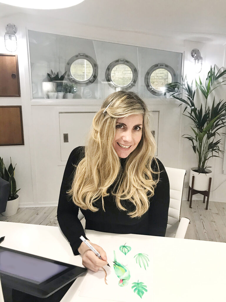Vicky Phillips is the founder of Lightship Print Shop a surface pattern and illustration studio based on board a lightship in East London. The studio specialises in artwork for apparel, stationery and homewear and has worked with clients from around the world including American Eagle, Paperchase, Blue Mint, Peter Alexander and The Big Draw among others, with artwork appearing on pyjamas to wrapping paper, diaries to swimming trunks and even some giant wooden cubes installed in a carpark!